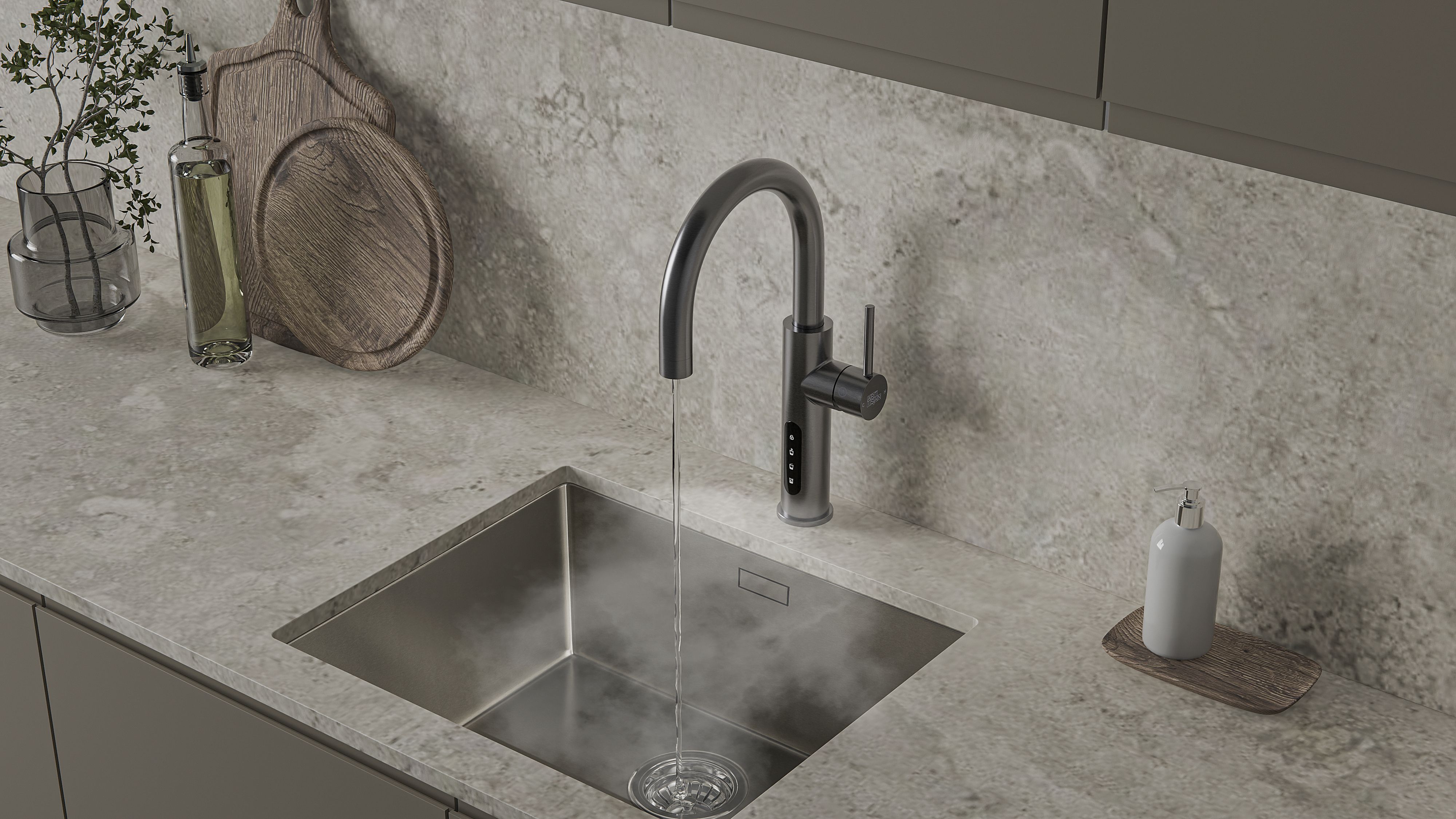 Функция подачи кипятка - подача воды начинается, когда вы касаетесь и удерживаете кнопку кипятка (красную кнопку).